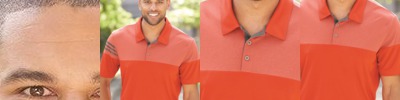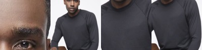 - Heather colorblock on upper chest, back and shoulders