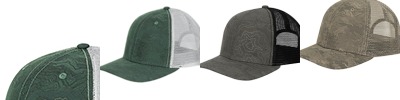 100% polyester camo print front and mesh back; No Sweat™ moisture-wicking sweatband ; structured, mid-profile; tonal print overlay of topographical pattern; plastic snapback closure;