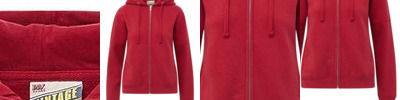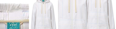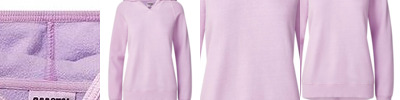 - 2x2 rib knit binding along hood front, cuffs and waistband