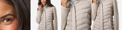 - Ribbed-knit cuffs and bottom band
