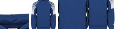 7 oz.; 100% Spun Polyester fleece fabric; Self-fabric cuffs; Contrast hood lining; Side-entry pockets; Underarm an side gusset panels;